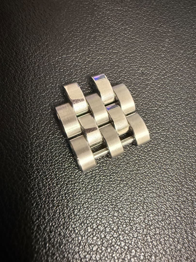 ゼニス純正メッシュベルト21mm※訳アリ10年ちょっと前に画像2のパイロットビッグデイトスペシャル(Ref.03.2410.4010/21.M2410)購入時についていたベルトです。ラグ幅は21mmで、最近のエルプリメロ は合うサイズのもの多いと思います。画像8のエンドピースを被せれば22mmでも対応すると思います。凄く良い作りで、昔のよくあるメッシュとは違います。状態は艶有り部分に傷はありますが、それ程気にならないと思います。また、画像9,10の通り、つく棒を溶接し直しています。詳しくは下記ご確認下さい。※訳アリ、つく棒修正に付いて私が使用時につく棒が外れてしまいました。その為純正に違い型で製作、溶接してもらいました。修理先は時計修理専門職人の為綺麗に補強されています。使用時は全く見えない箇所ですので言われないと気づかないと思います。一度サイズ調整すると固定される為普段時計を外した時にも目につきません。【注意】・上記内容ご確認頂き、中古品(一部修正)の為神経質な方はご遠慮下さい。・ノークレーム、返品は出来ませんので宜しくお願い致します。検索ゼニスZENITHIWCブライトリングタグホイヤーロレックスジラールペルゴジャガールクルトメッシュブレスメッシュブレスレット