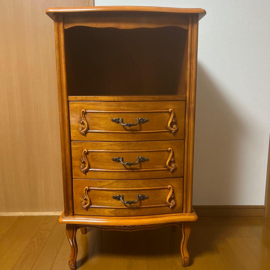 カリモクのコロニアルシリーズ電話台FAX台キャビネット。スレや小傷などの使用感は画像に記載した通りですが全体的に良好な状態です。模様替えの為、大切に使ってくださる方にお譲りしたいと思います。【サイズ】幅:845mm 奥行:365mm 高さ:810mm※ ペット飼育歴無し、喫煙者無し。※ 配送手配は出来るだけ早めに行います。※ いいねを頂いても購入希望者がいない場合、予告無く早期終了することがありますので、ご希望の方はお早めにどうぞ。